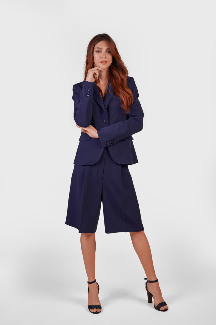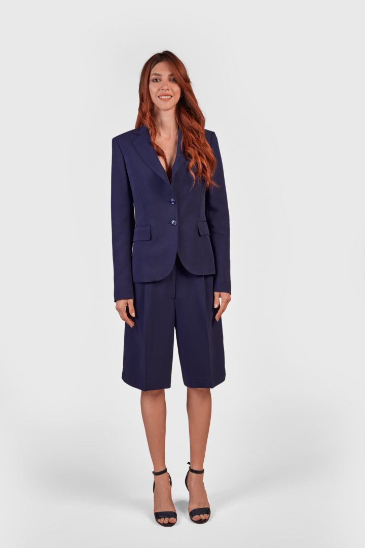 Single-breasted jacket with two buttons – Double-profile pockets with flap and left piping pocket – Short trousers with a pleat at the front – American pockets at the front and single-profile pockets at the back – Knee length – Composition 3% elastane 97% viscose – Regular fit – Made in Italy