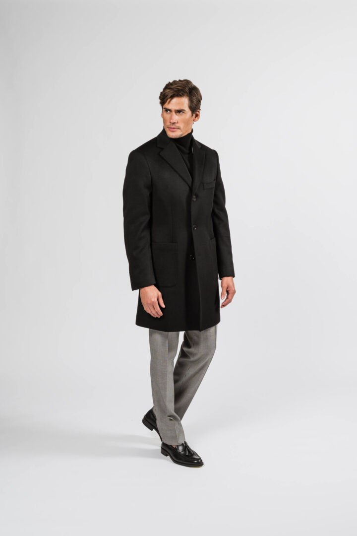 Single-breasted coat with three buttons – Lined – Patch pockets and left piping pocket – Tailored stitching – Composition 100% wool – Regular fit – Made in Italy