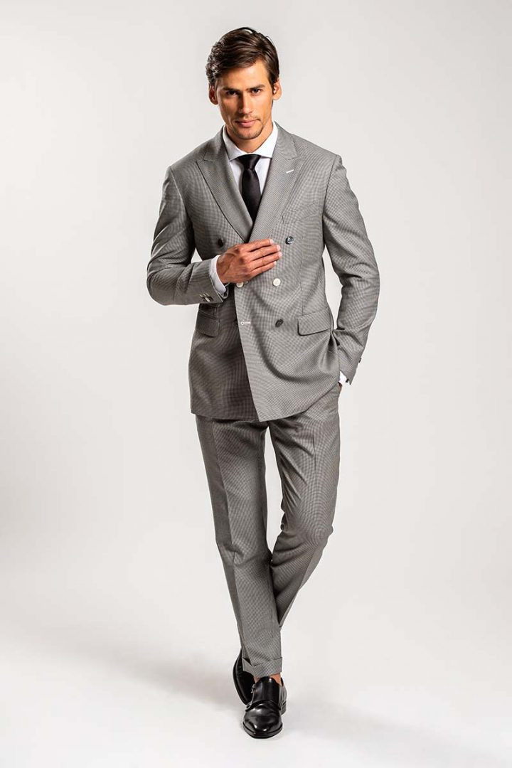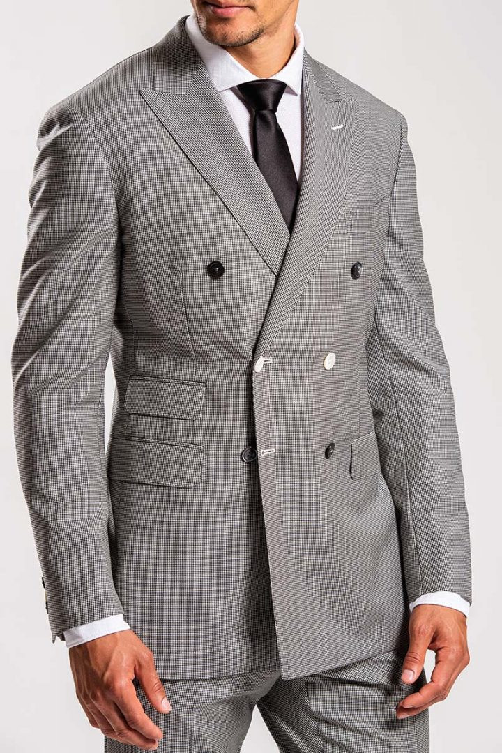 Double-breasted men suit in black and white pied de poule wool COD. H8504P9101-1730-20-486393-9