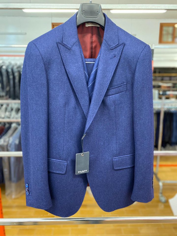 Single-breasted jacket with two buttons – Double-profile pockets with flap and left piping pocket – Trousers without pleats – American pockets and two double-profile back pockets – Composition 100% wool – Regular fit – Made in Italy