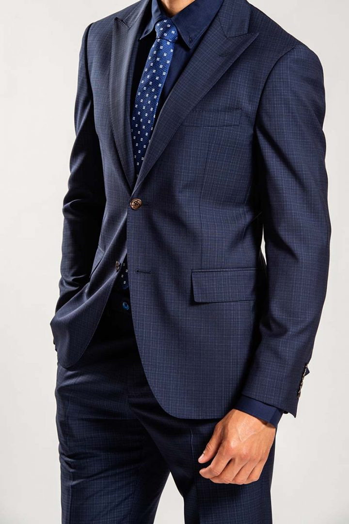 Men suit in blue micro-patterned wool COD. H8201-P9101-1750-20-874160-3
