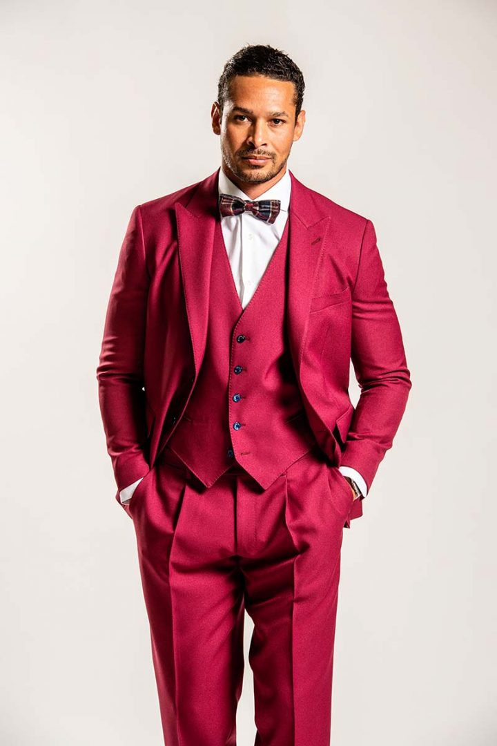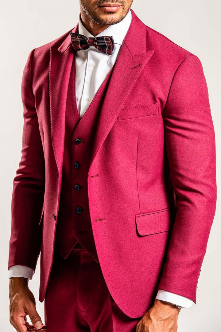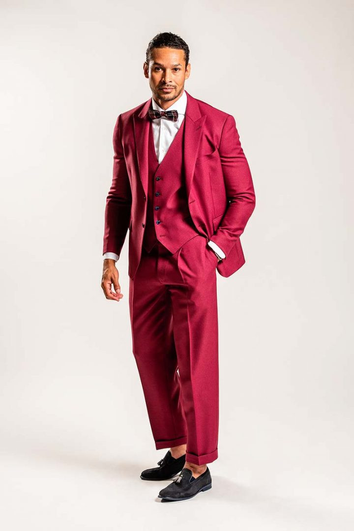 Men suit with vest in red bordeaux wool