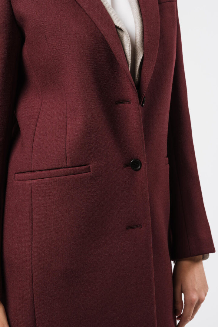 Single-breasted coat with three buttons – Single profile pockets and left piping pocket – Central back vent – Composition 37% polyamide 33% polyester 27% wool 3% elastane – Slim fit – Made in Italy