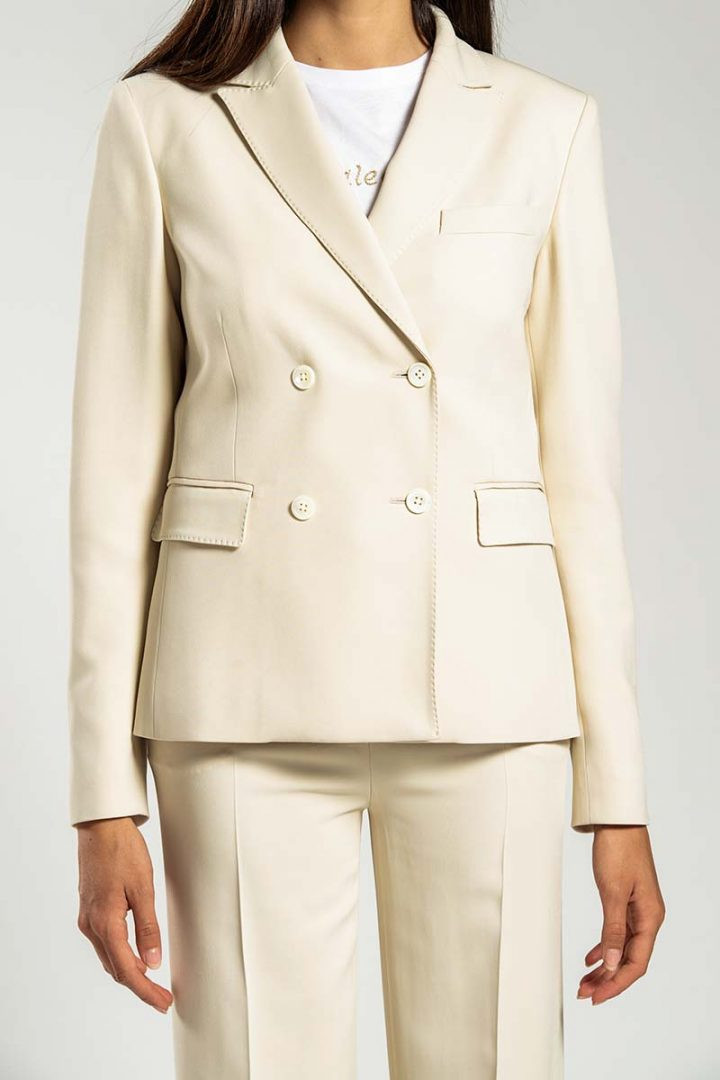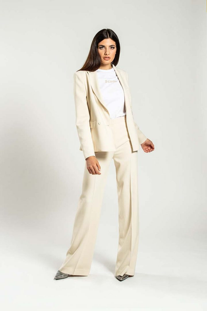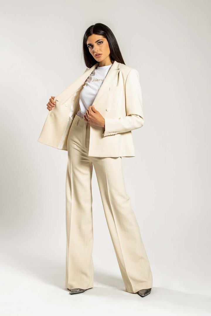More detailsAvailable in a symbol of elegance, this stretch viscose suit reinterprets an icon of the women’s wardrobe in a contemporary design. Defined by the comfort of the regular fit, composed of a double-breasted jacket and pleatless trousers with a straight seat, it was created for the woman who pays attention to style and practicality even on formal occasions. A versatile garment for a refined look.