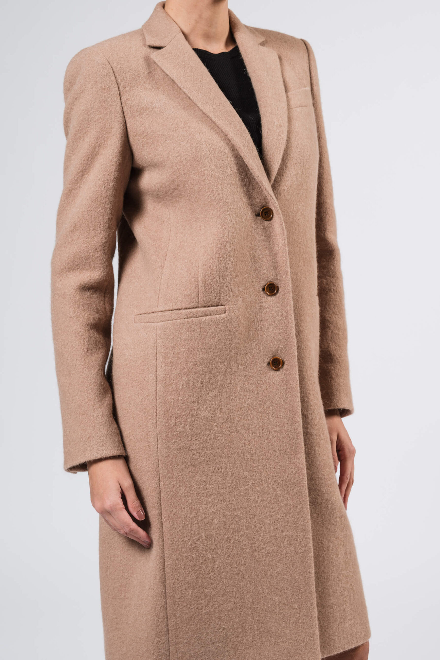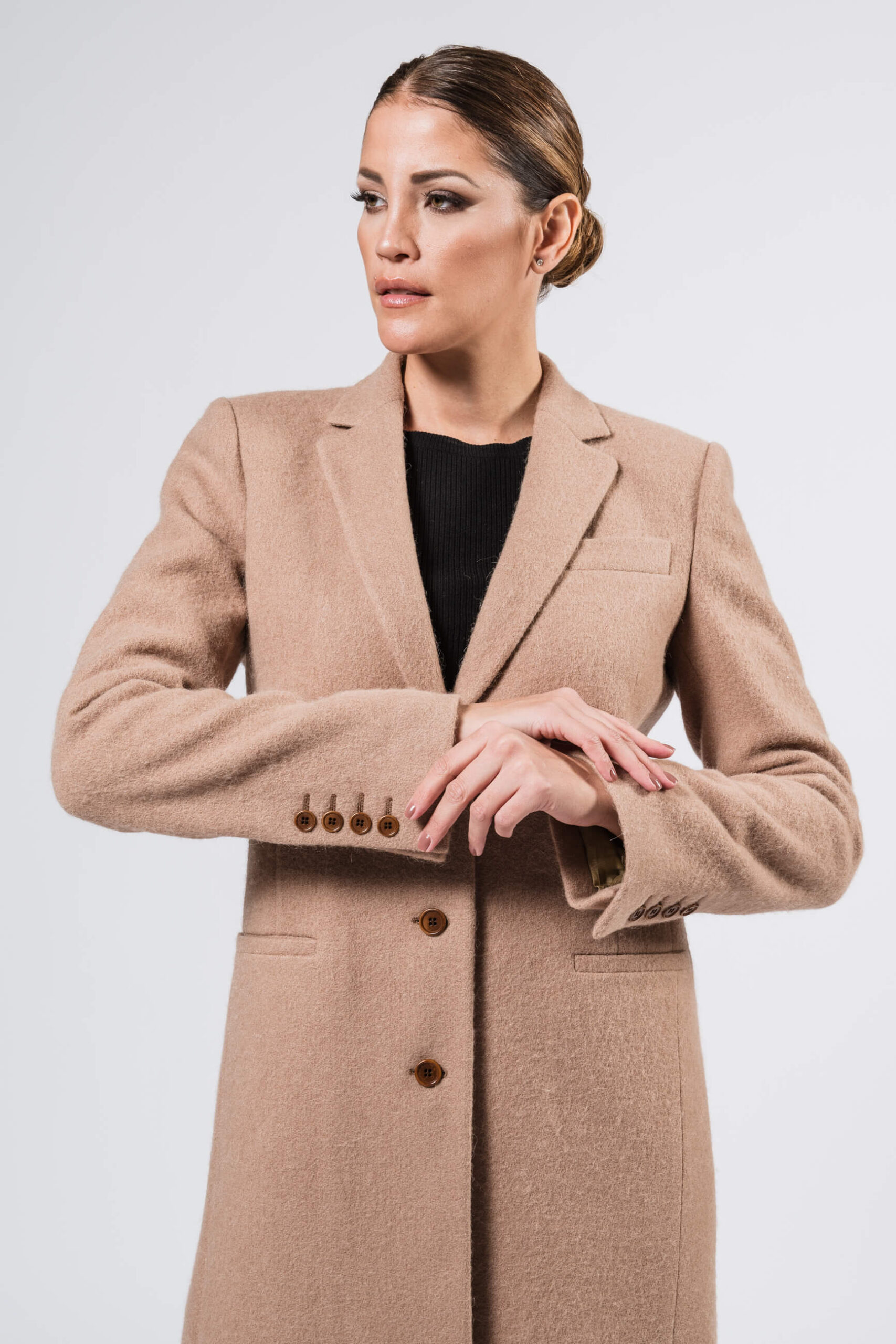 Maggiori dettagliRealizzato in un blend di lana vergine e alpaca che contribuisce a rendere il capo raffinatamente strutturato e avvolgente. Questo cappotto è definito da una silhouette in vestibilità slim che accompagna il corpo in modo perfetto. Abbinato ad una cromia cammello evidenzia in modo raffinato l’eleganza femminile di un capo davvero unico nella sua sartorialià.