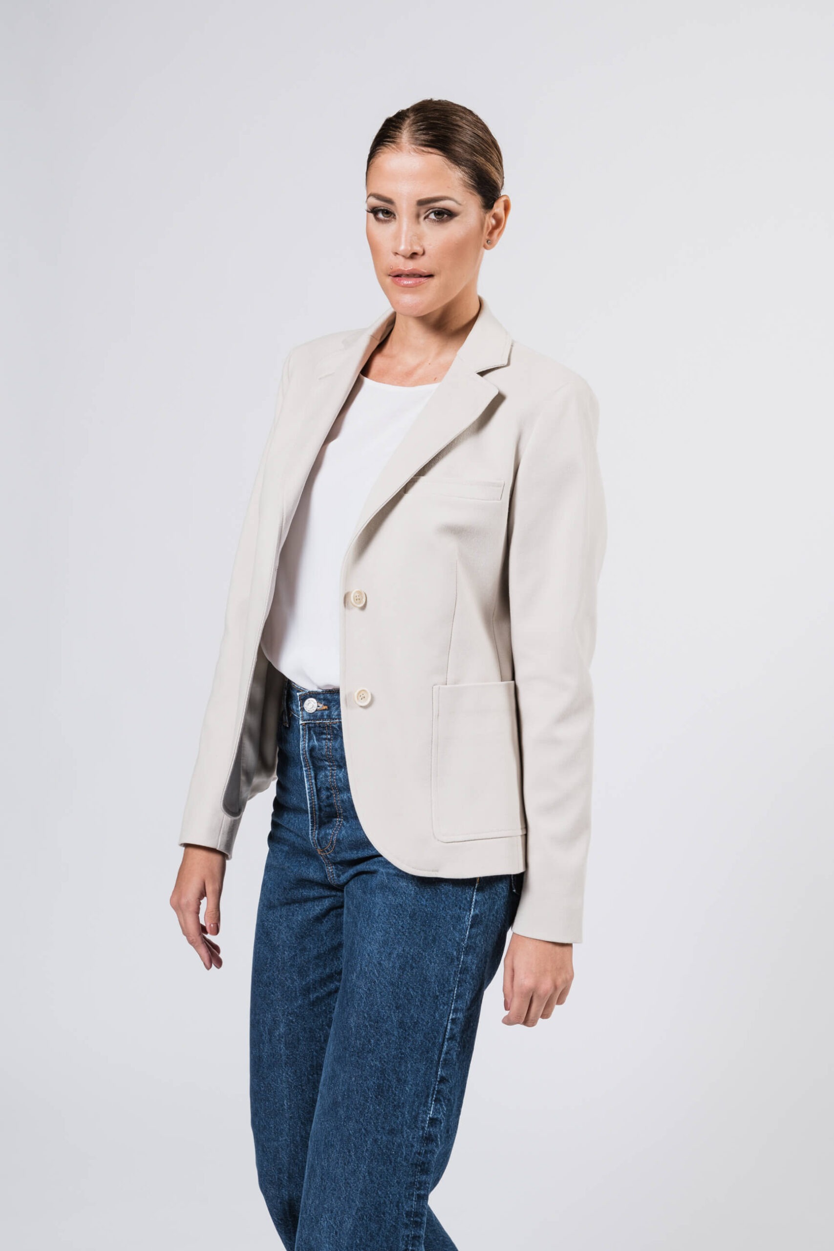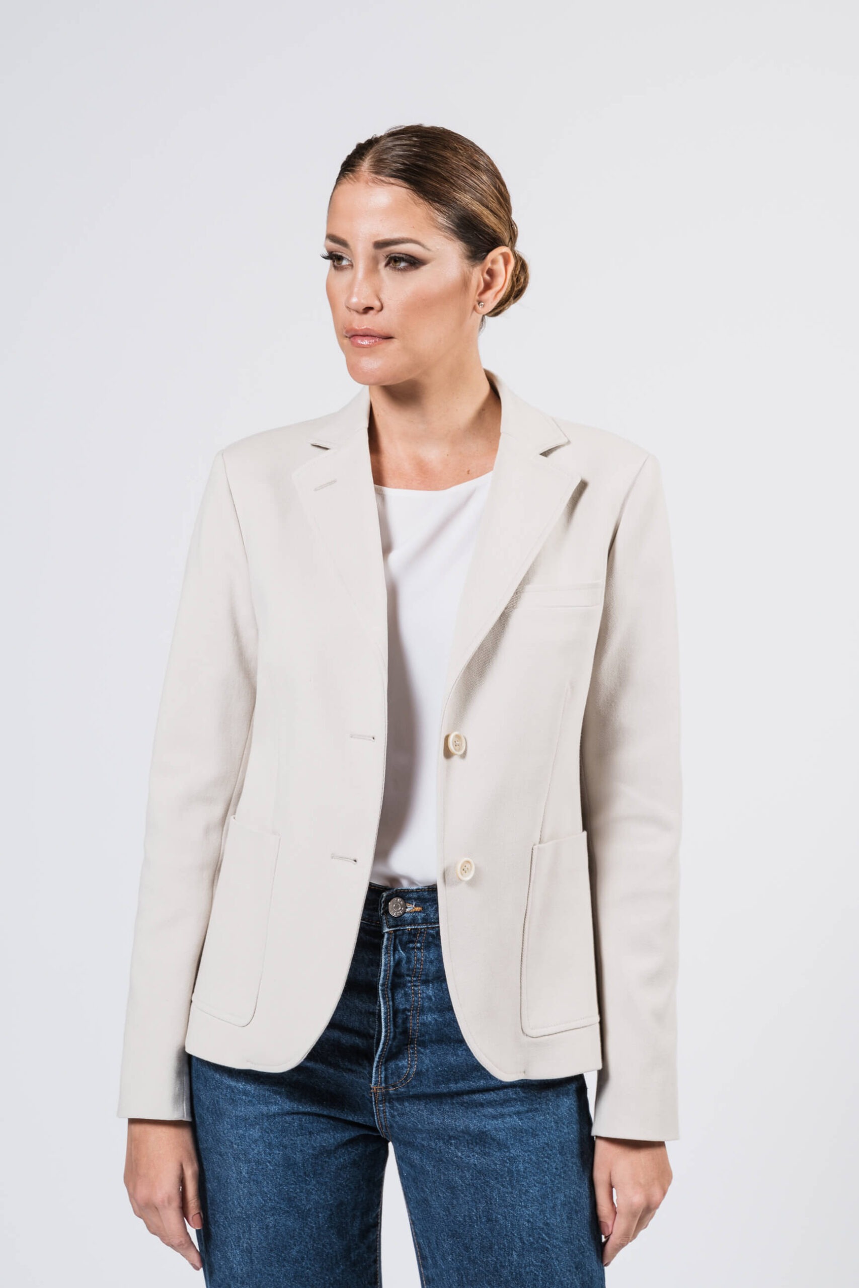 Giacca monopetto a due bottoni – Tasche a toppa applicata e taschino pistagno sinistro – Composizione 97%cotone 3%elastan – Vestibilità regular fit – Made in Italy