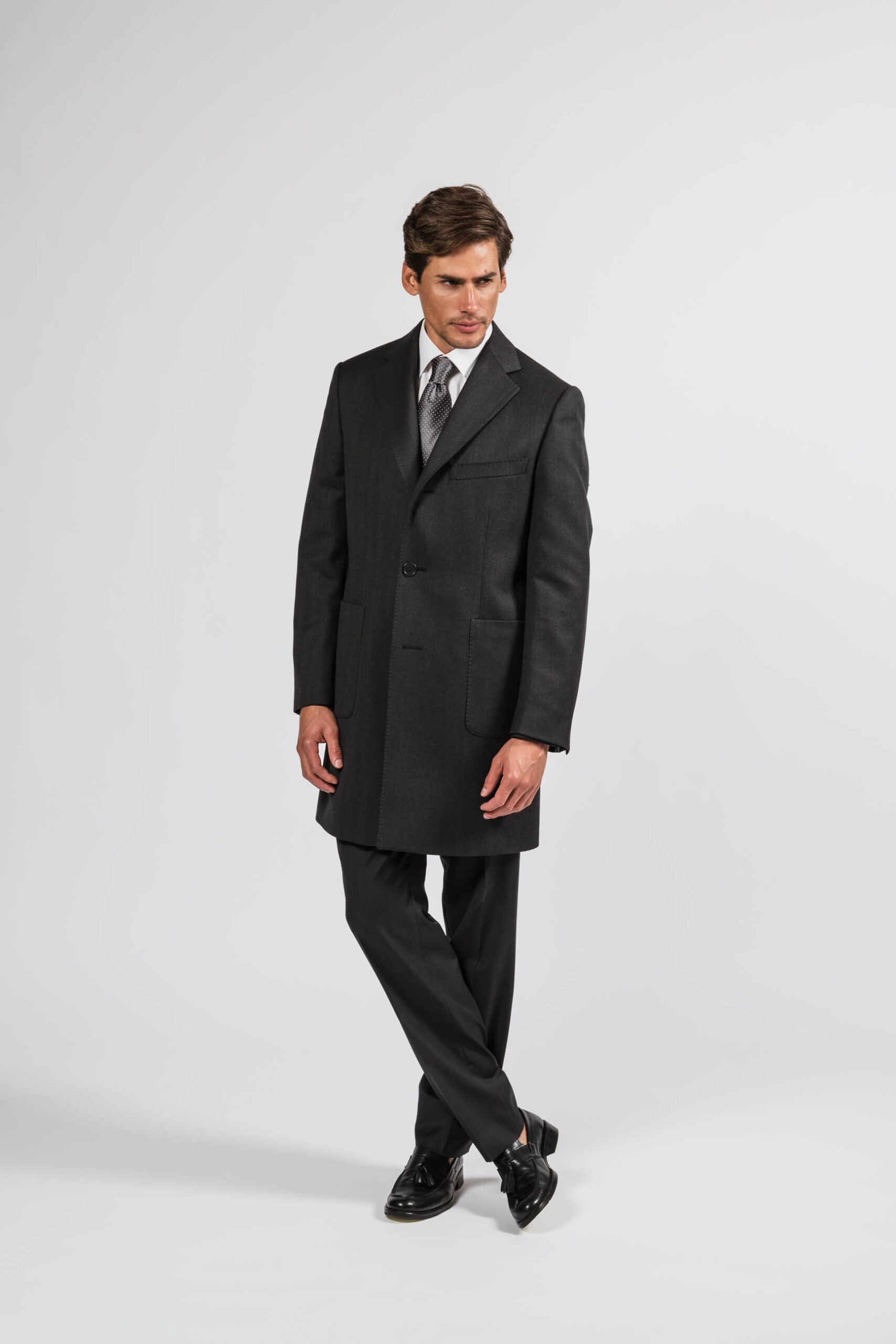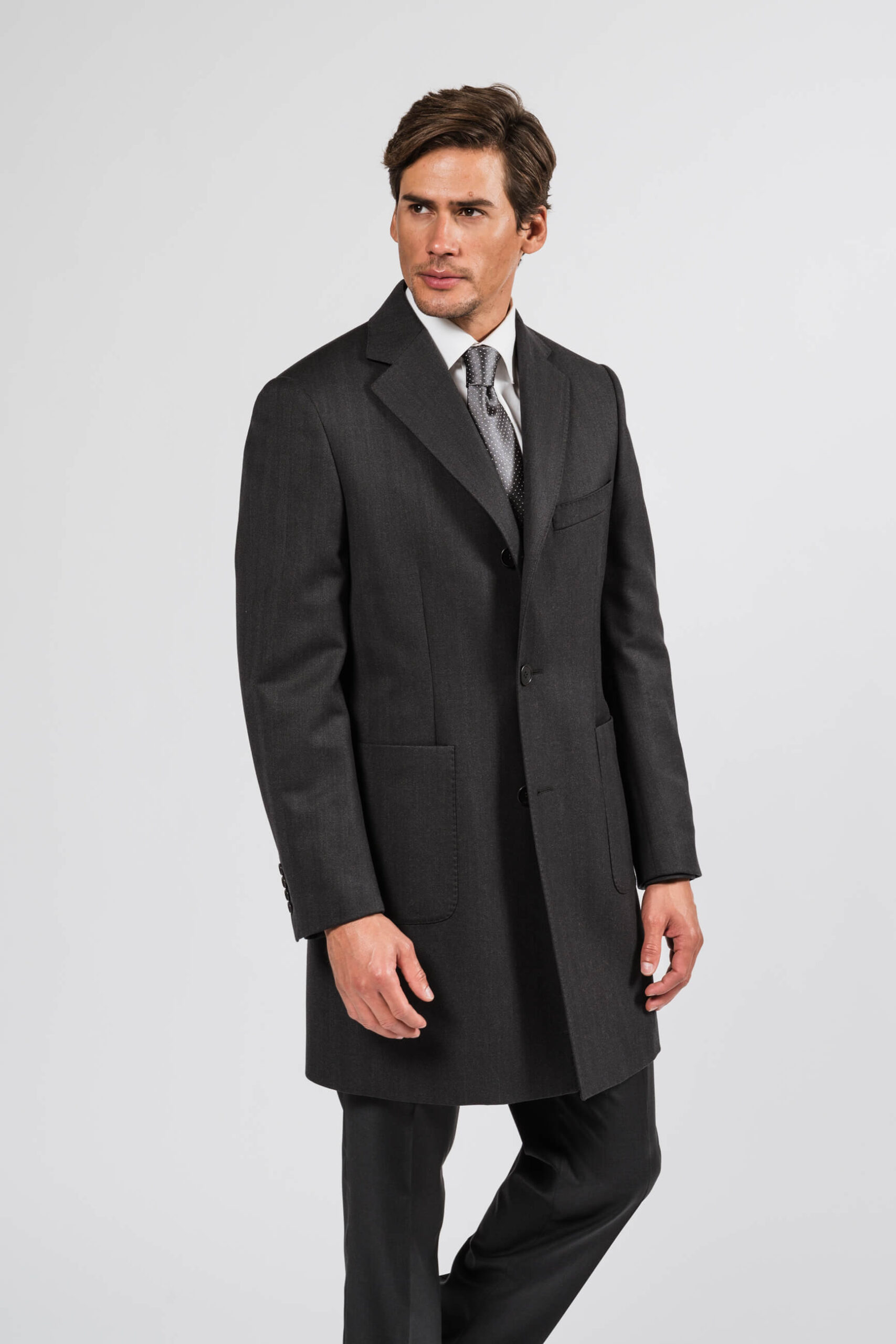 Cappotto monopetto tre bottoni – Foderato – Tasche a toppa applicate e taschino pistagno sinistro – Impunture sartoriali – Composizione 78%lana 19%cotone 3%cashmire – Vestibilità regular fit – Made in Italy