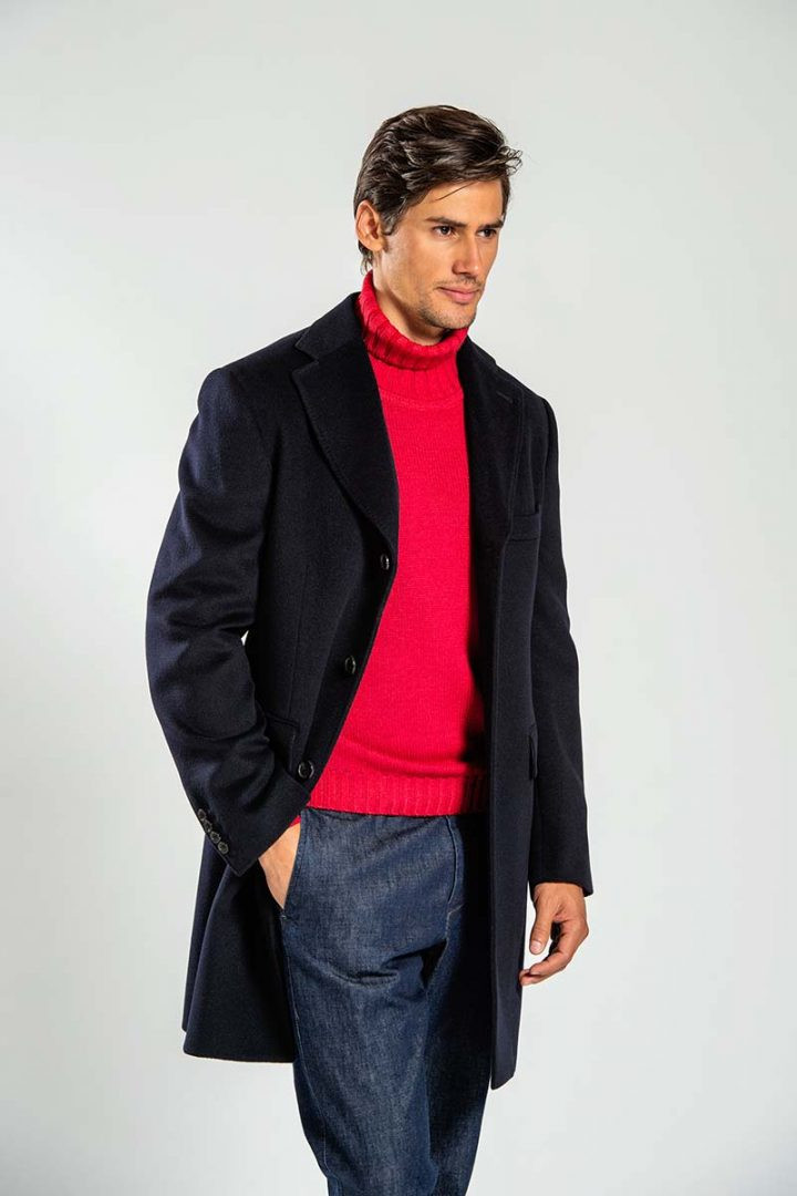 Cappotto monopetto tre bottoni – Foderato – Tasche a doppio profilo con pattina e taschino pistagno sinistro – Impunture sartoriali – Composizione 100%lana – Vestibilità regular fit – Made in Italy