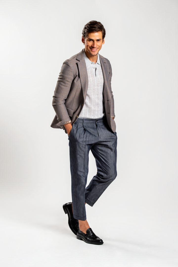 Giacca monopetto due bottoni – Dietro sfoderato – Tasche a doppio profilo con pattina e taschino pistagno sinistro – Impunture sartoriali – Composizione 100%cotone – Vestibilità regular fit – Made in Italy