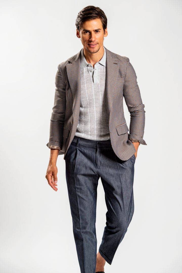 Capo imprescindibile del guardaroba maschile, questa giacca monopetto in cotone acquisisce un tocco elegante e dinamico, grazie alla fantasia tricolor.