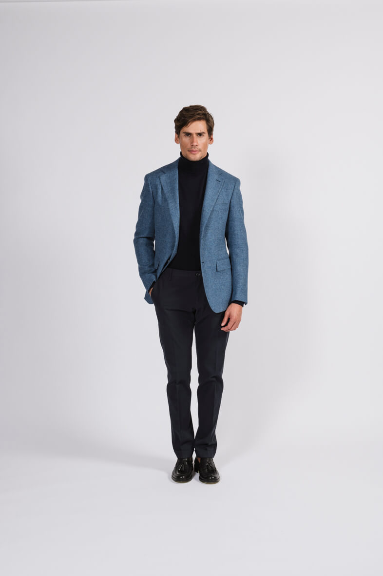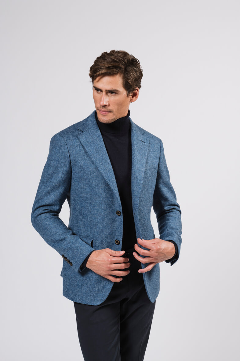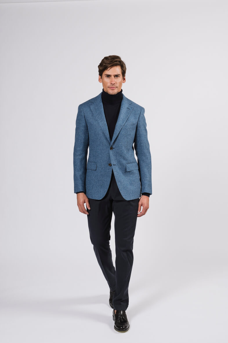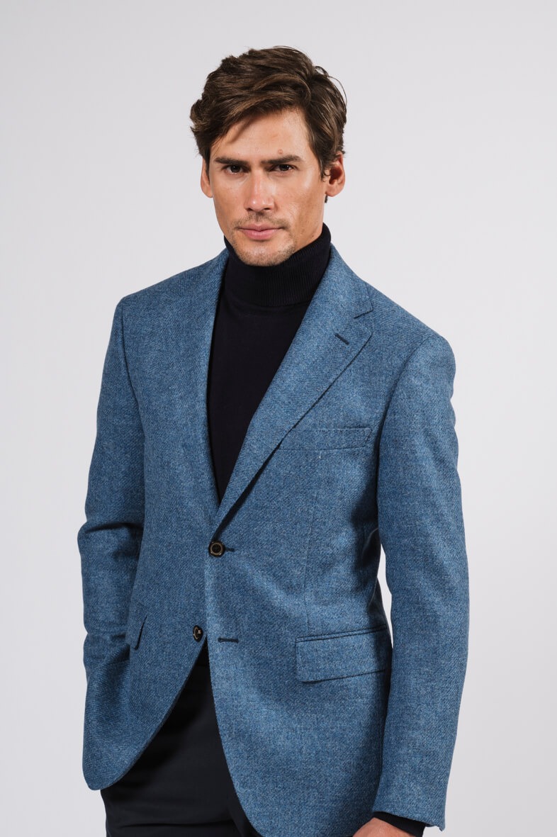 Comfort e ricercatezza contraddistinguono questa giacca monopetto Baleani in un pregiato tessuto in lana shetland.