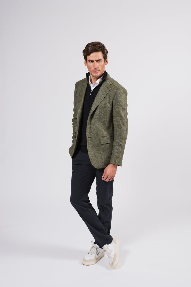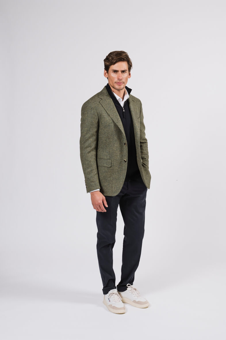 Giacca monopetto due bottoni – Foderata – Tasche a doppio profilo con pattina e taschino pistagno sinistro – Impunture sartoriali – Composizione 100%lana – Vestibilità regular fit – Made in Italy