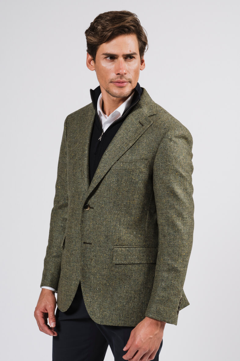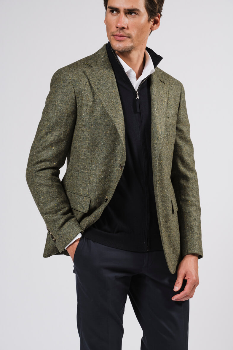 Realizzata in un pregiato filato di lana shetland dalla cromia autentica. Questa giacca monopetto unisce le linee pulite della vestibilità regular ai dettagli ricercati, come le tasche tagliate con aletta. Per il gentlemen che mostra la sua eleganza anche nei dettagli più profondi.