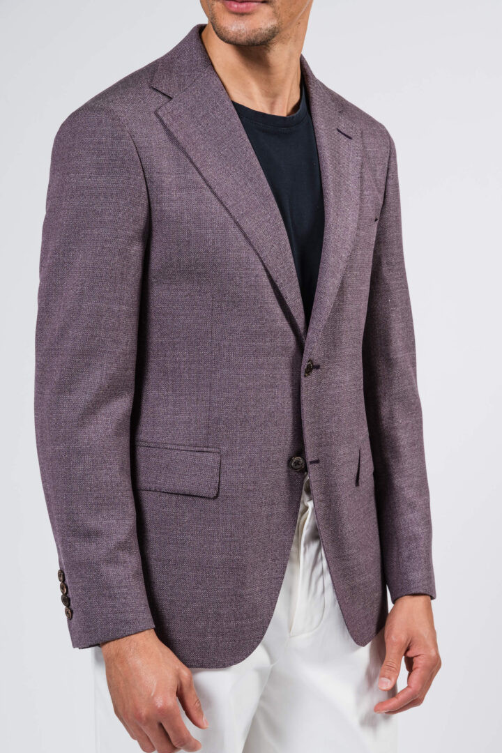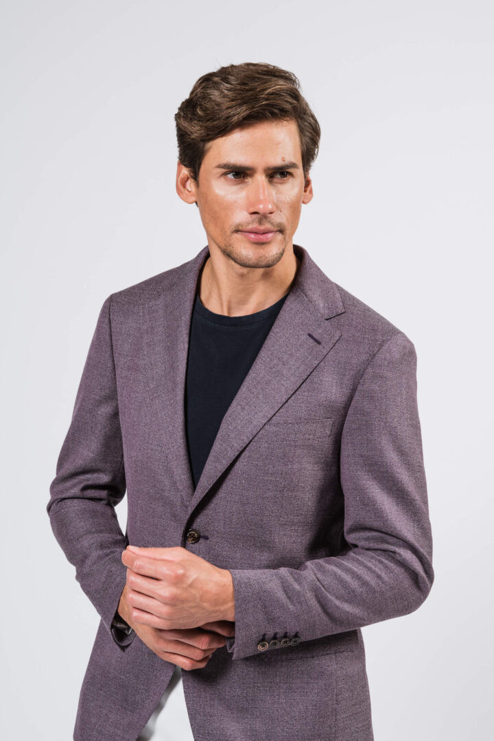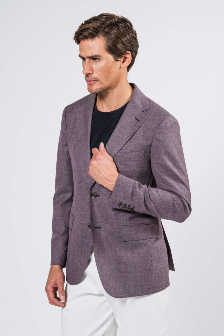 Giacca monopetto due bottoni – Dietro sfoderato – Tasche a doppio profilo con pattina e taschino pistagno sinistro – Impunture sartoriali – Composizione 100%lana – Vestibilità regular fit – Made in Italy