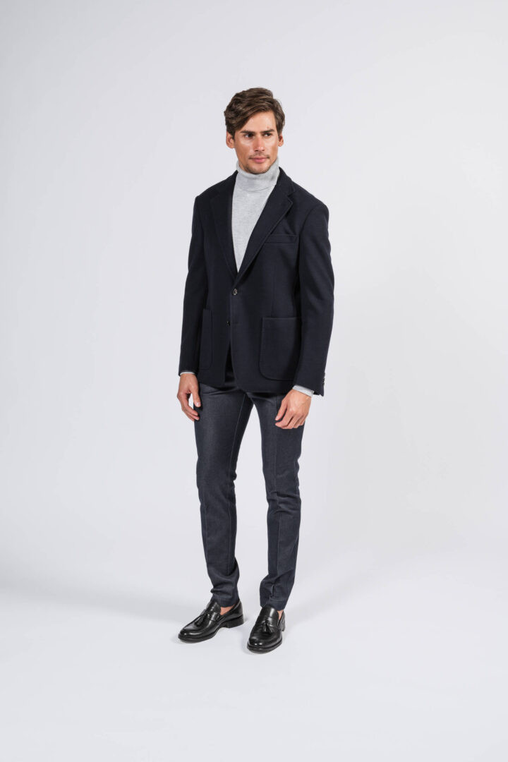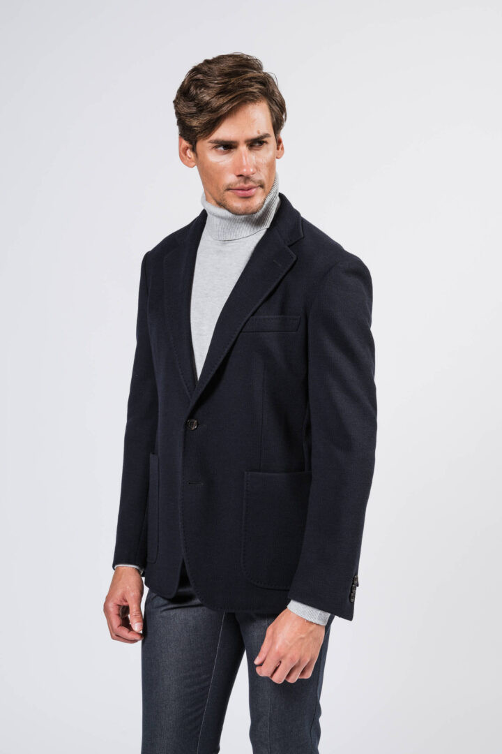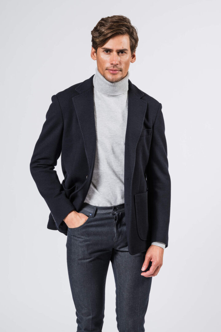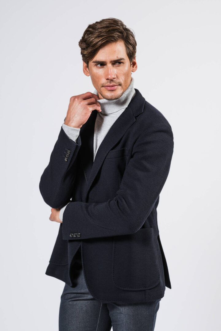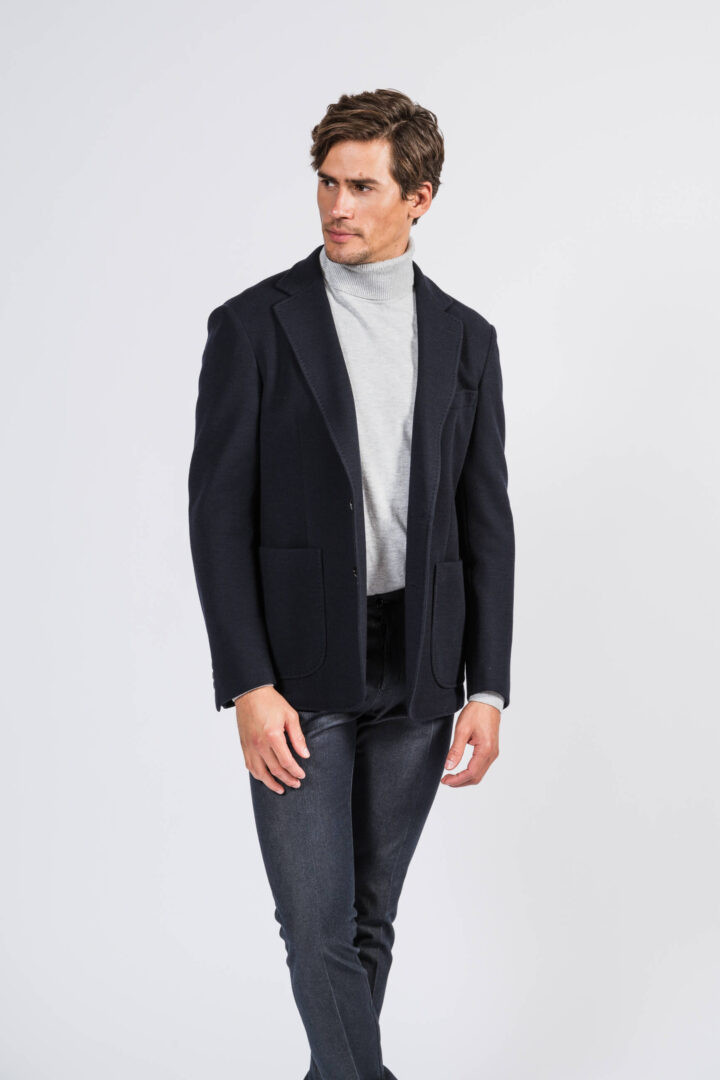 Giacca uomo Sergio in jersey di lana e cotone blu navy
